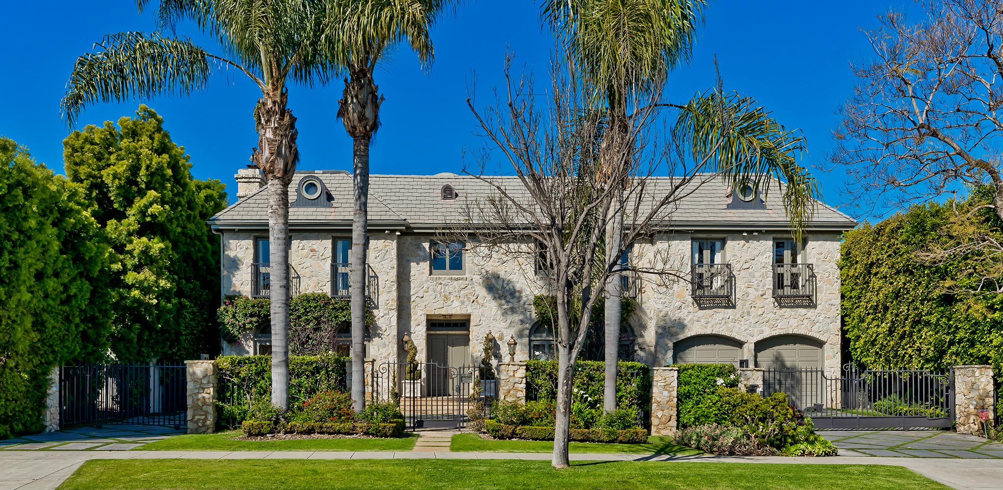 This magnificent French estate in the coveted west-end of the Beverly Hills flats was built by some of the best artisans in the industry with unparalleled attention to detail. Great volume and scale are the hallmarks of the design. Drenched in sunlight in the daytime this home provides a setting for grand entertainment. Family room, a grand and elegant living room, and a formal dinning room are located off of the two story skylighted majestic foyer. A very well appointed primary suite with formal foyer, sitting area, his & her baths, sauna and especially appointed walk-in closets. Two additional large en-suite bedrooms and a wood-paneled office (or 4th bedroom) are located upstairs and Two additional bedrooms are on the first floor. Manicured grounds surround the pool area. Large wood floored guest-house with its own marble bathroom. expansive backyard with a well appointed covered barbecue area and the pool with attached spa provide the setting for private and romantic to large scale soiree. Room to park 6 cars.